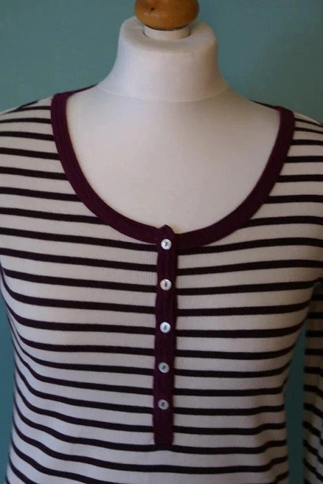 Śliczna bluzka w paski w stylu żeglarskim, z długim rękawem.