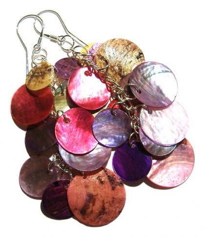 Długie, piękne kolczyki z masy perłowej. Srebro, elementy posrebrzane + masa perłowa - różne kolory wielkość pastylek. Długość kolczyków bez bigla: około 8 cm.
