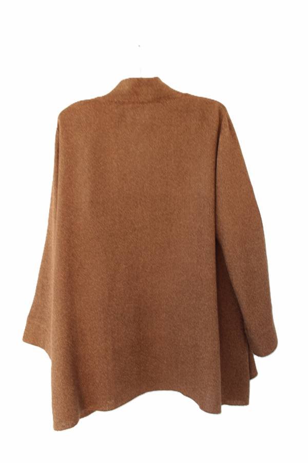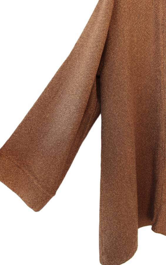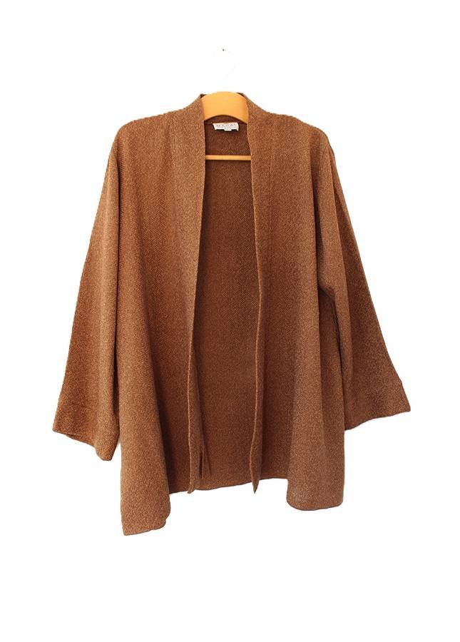 Dzianinowy żakiet lub kardigan vintage w pięknym odcieniu ciepłego jasnego brązu. Oryginalnie niezapinany. Ciekawa struktura tkania materiału.
