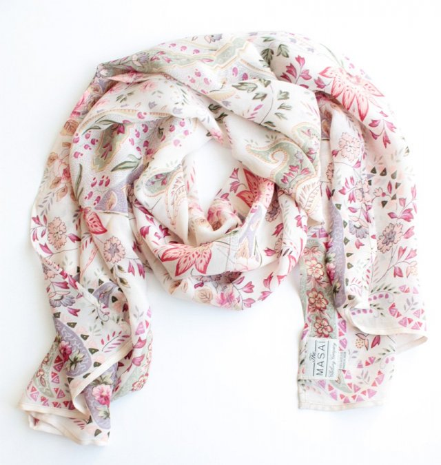 Szal skandynawskiej marki Masai w kwiatowe ornamenty. Wykonany z wiskozy. Piękny dodatek, który doda Twojej stylizacji kobiecego, zwiewnego charakteru. Idealny na każdą porę roku.