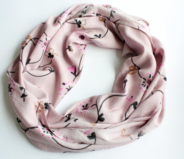Oryginalny, kwiatowy szal skandynawskiej marki MASAI o lekko gniecionej fakturze.