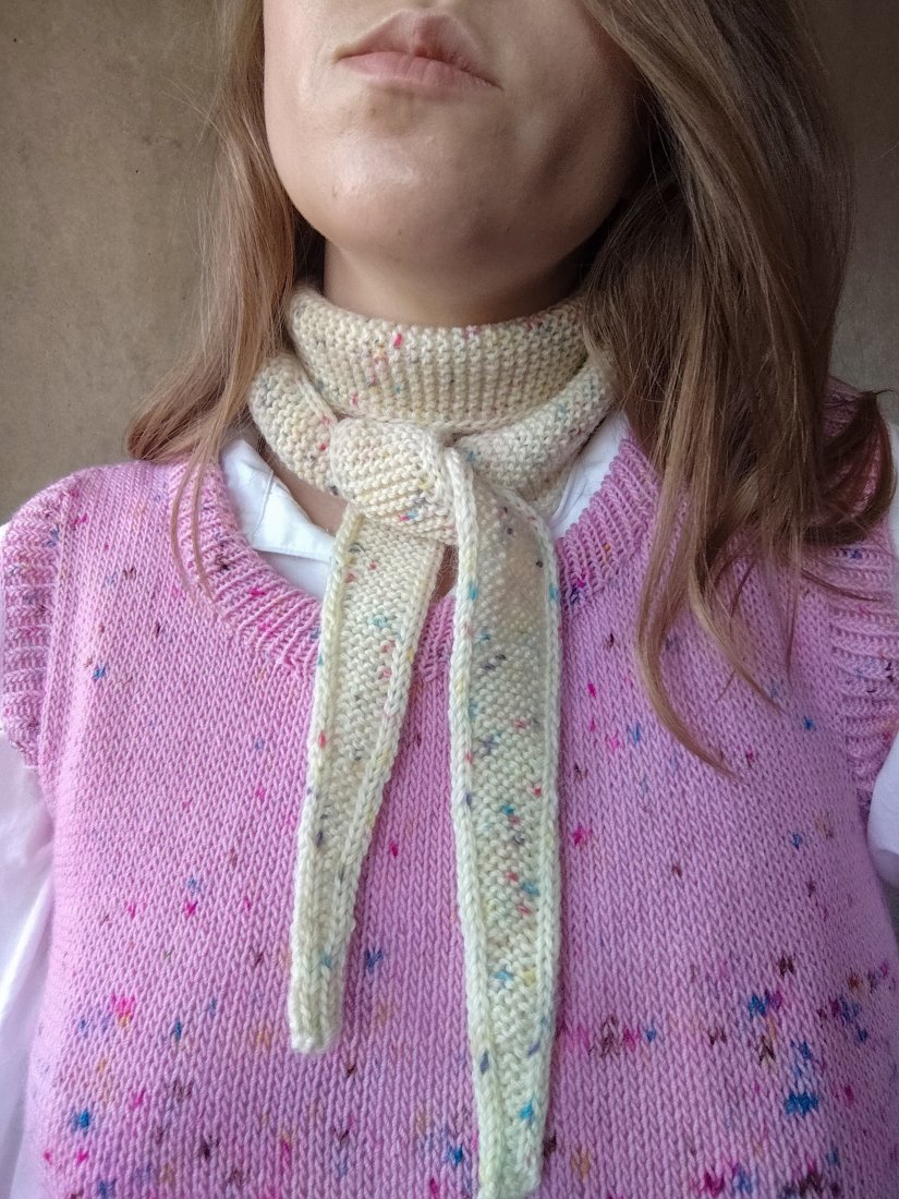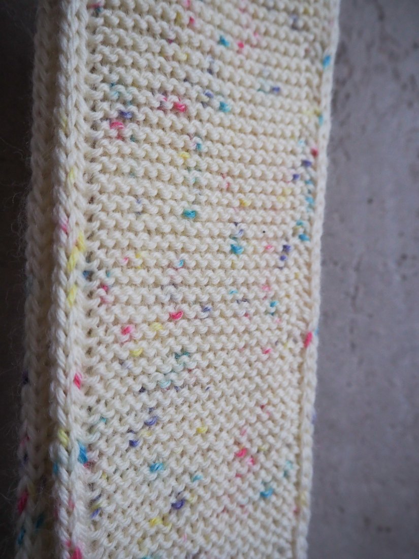 Wełniany szalik obsypany kolorową posypką - przesłodki! Wykonany ręcznie na drutach z wełnianej przędzy.