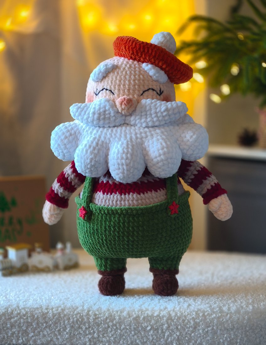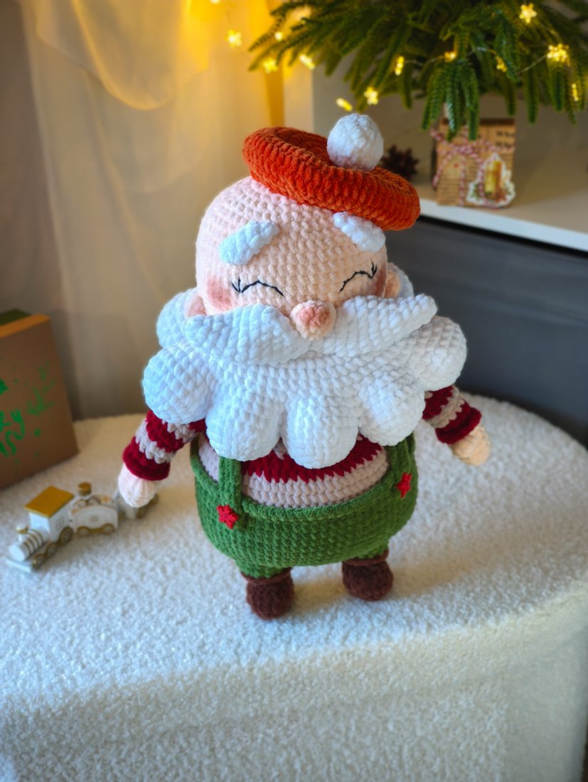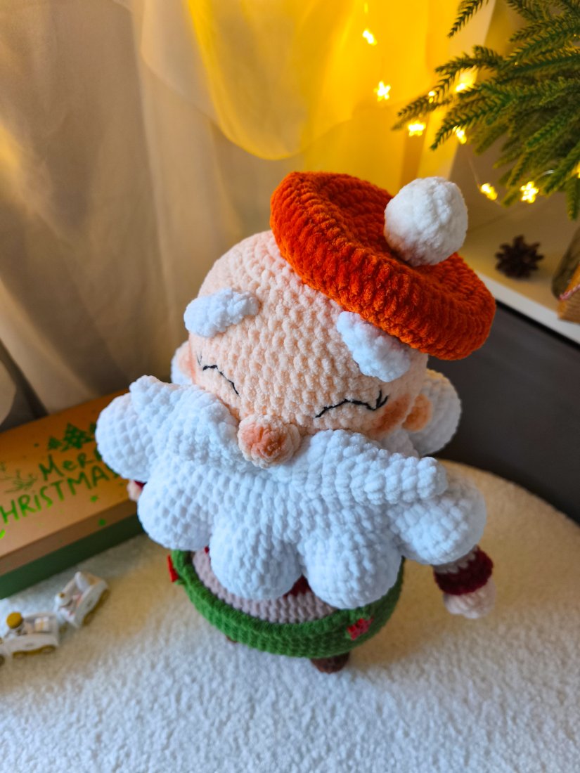 - Mikołaj wykonany z wysokiej jakości miękkiej pluszowej włóczki.
