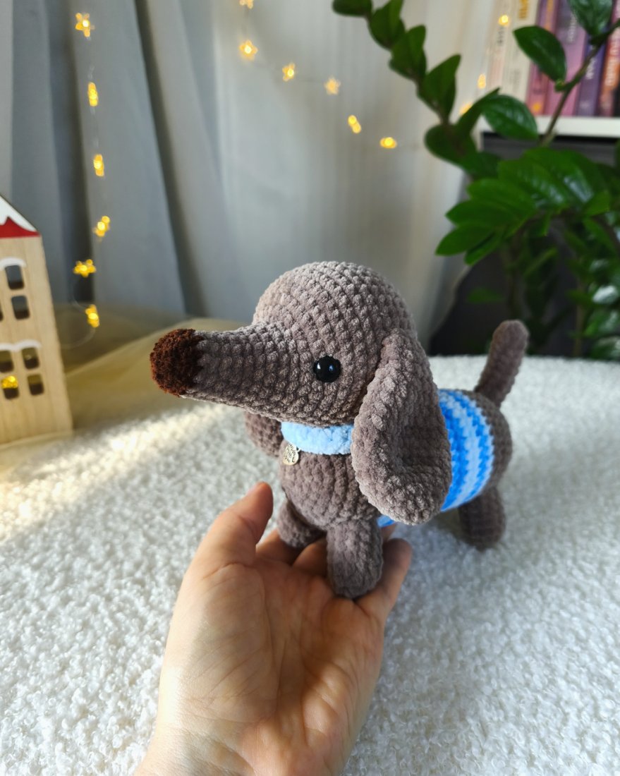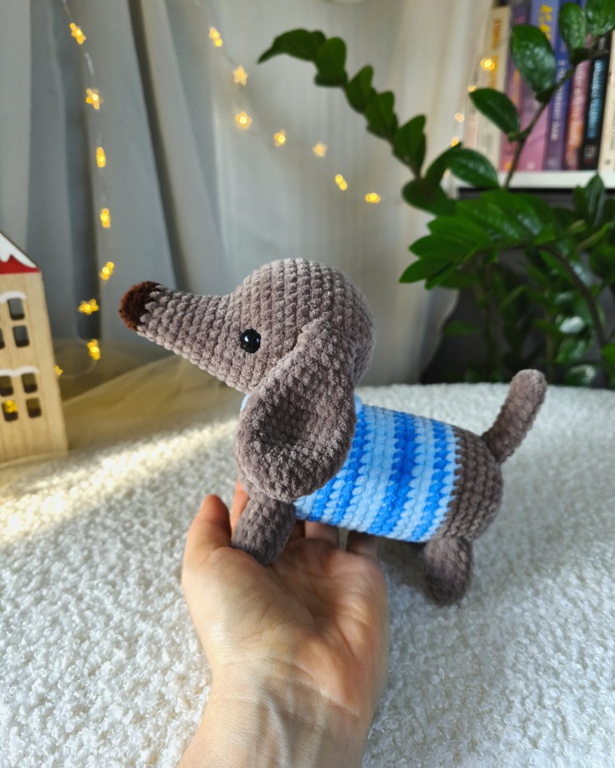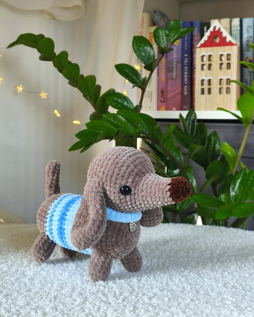 Szydełkowany jamniczek to ciepły prezent dla dzieci czy dorosłych. Z pewnością wywoła uśmiech na twarzach osób w każdym wieku!
