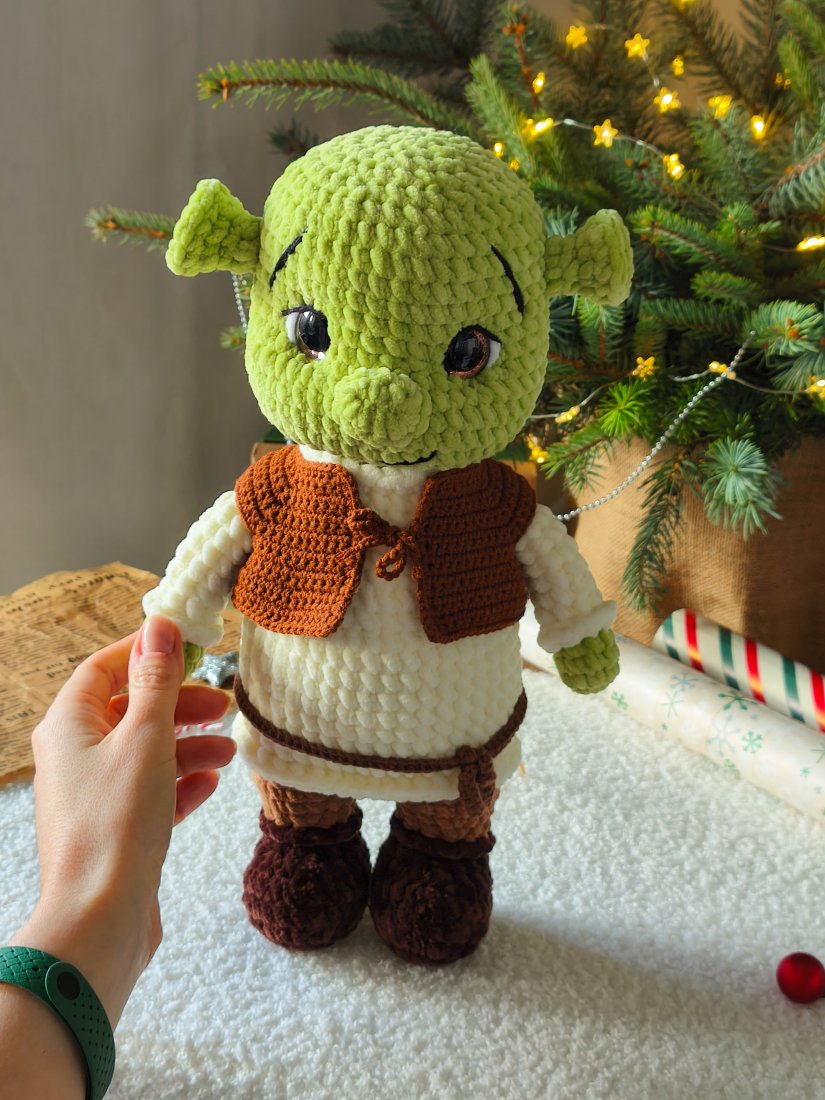 Pluszowy Shrek na szydełku będzie uroczym prezentem dla dziecka lub przyjaciół na święta, będzie cudowną ozdobą w pobliżu choinki lud dekoracją do pokoju dziecięcego!