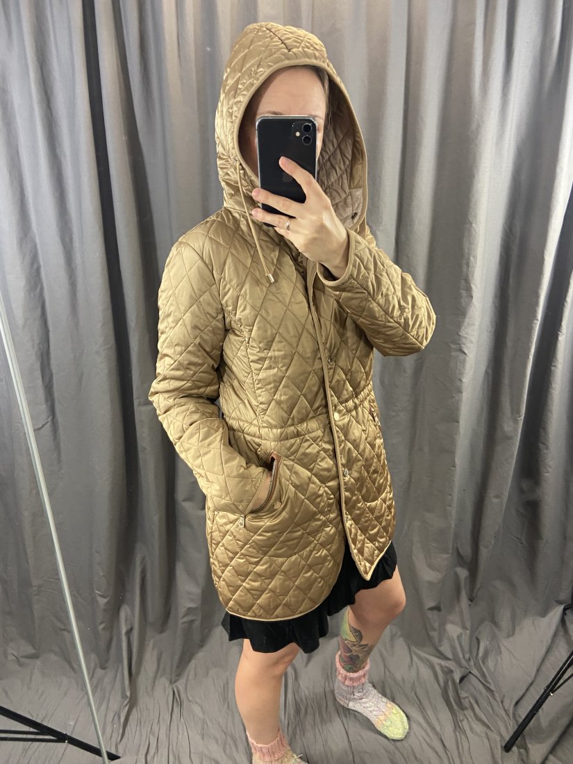 Boski, lekki płaszczyk z kapturem by Massimo Dutti. Pikowany, w pasie można sobie dopasować ściągaczem od wewnątrz.