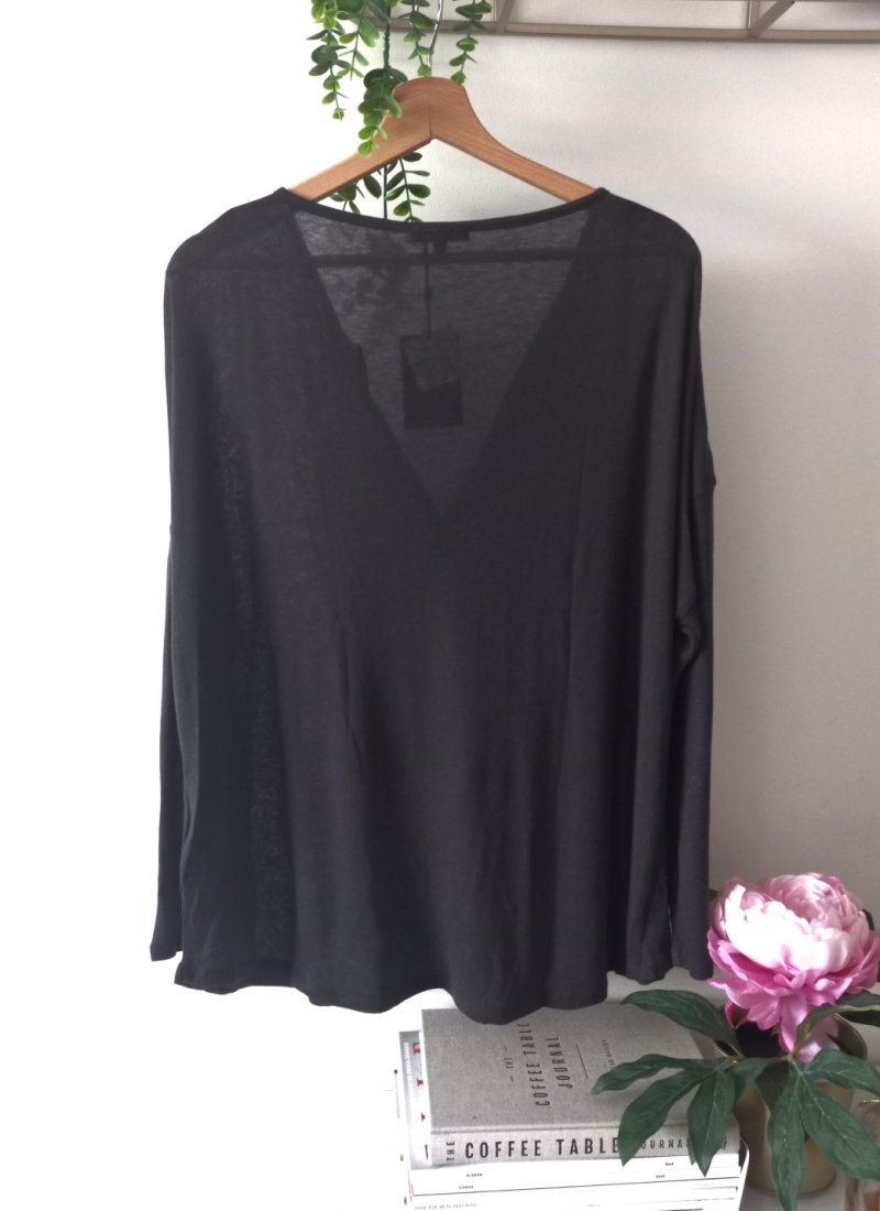 Luźny krój, dekolt w serek. Piękny grafitowy kolor.