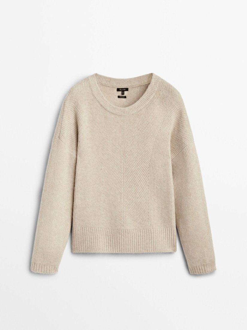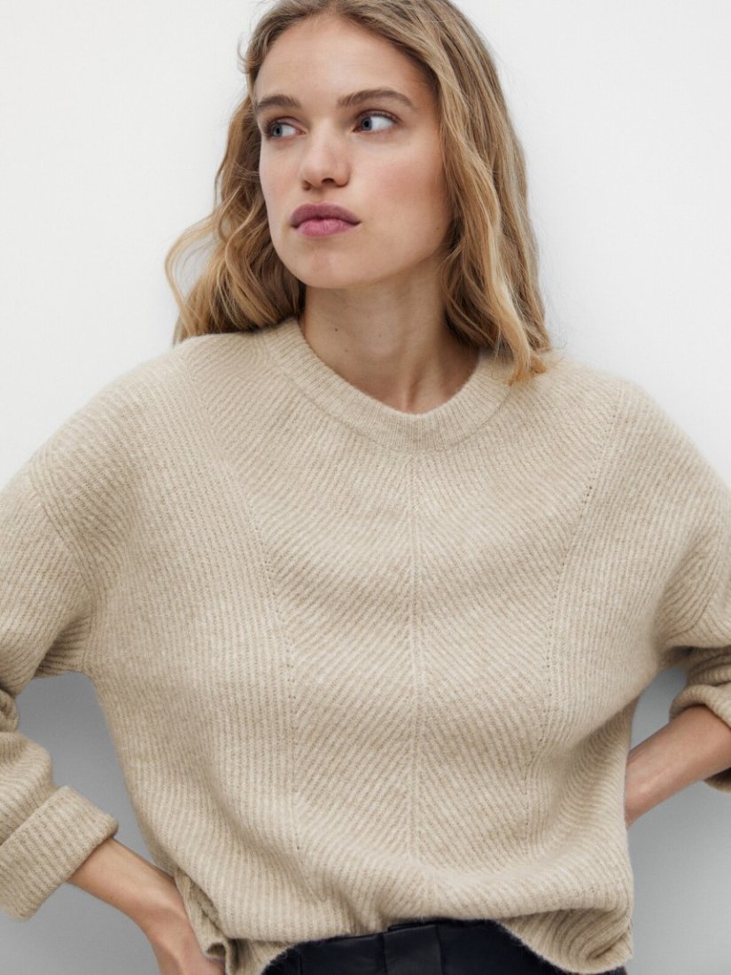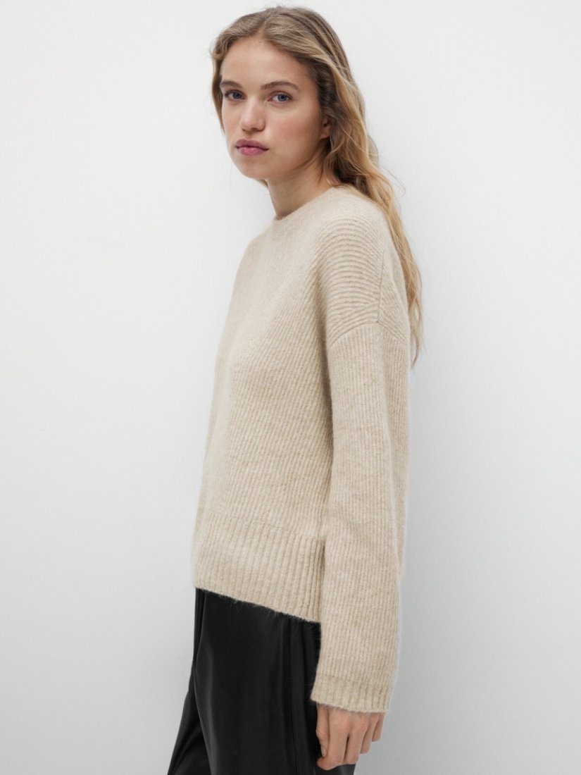 Jasnobeżowy ciepły sweter z wełną i alpaką.
