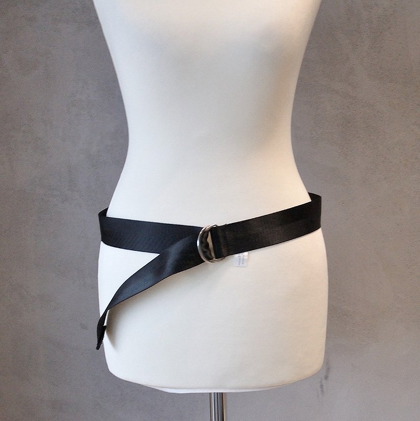 Średniej grubości, basicowy pasek wykonany z czarnej taśmy (fakturą przypomina samochodowy pas bezpieczeństwa, ale jest cieńszy). Marta TALLY WEIJL.