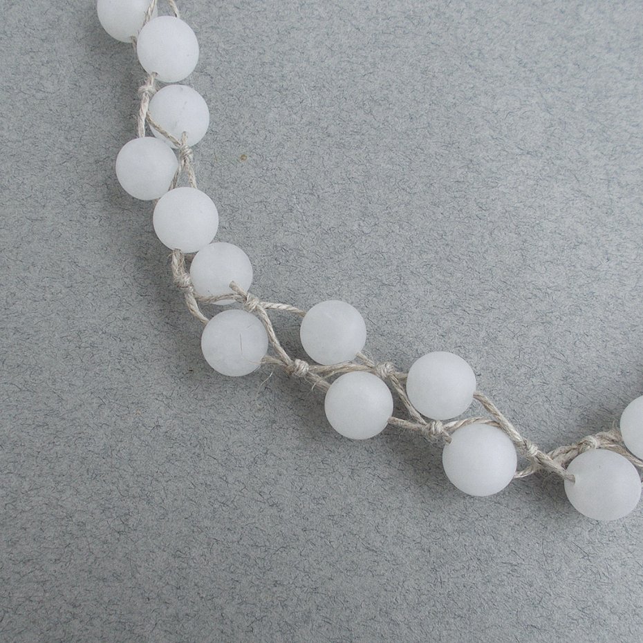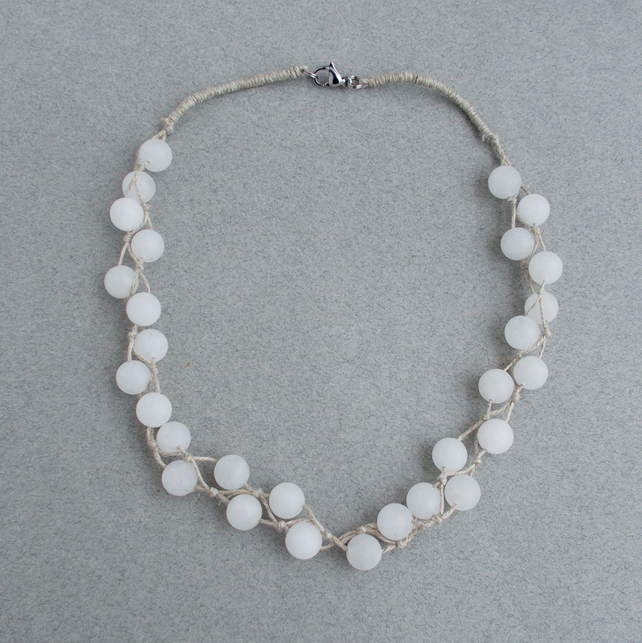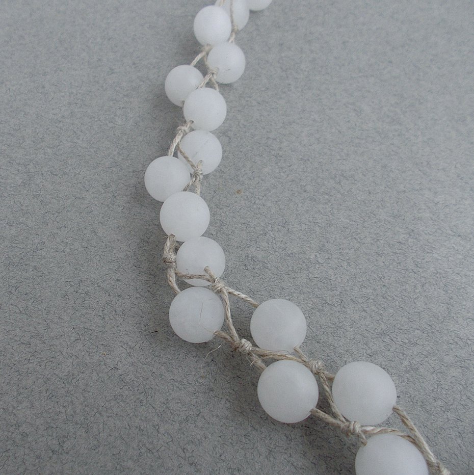 Tagi: #jadeit biały, #len naturalny, #naszyjnik białe kamienie, #naszyjnik na prezent