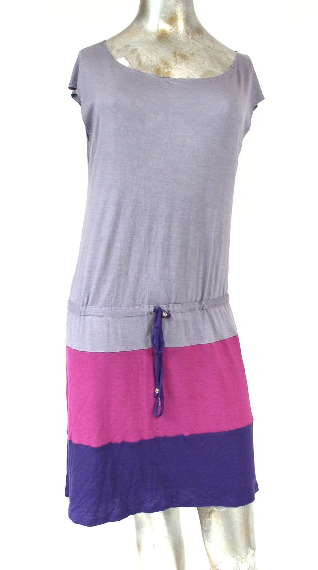 Sukienka letnia firmy matty m.Rozmiar S na metce ale jest większa ..Materiał 100% rayon.Podszewka na spódnicy z tego samego materiału.Odcięta poniżej bioder z tunelem i paskiem do ściągania.Dól dwukolorowy-różowy i fioletowy.Dekolt i pachy nie obrębione.Stan bardzo dobry.Długość 88 cm.pod pachami 96 cm.