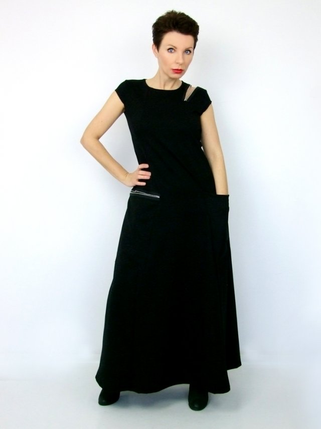 Tagi: #czarny, #maxi sukienka, #sukienka z dzianiny, #zamki