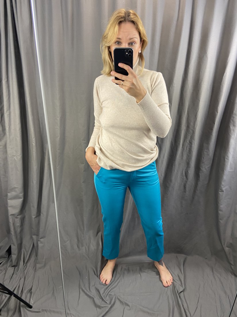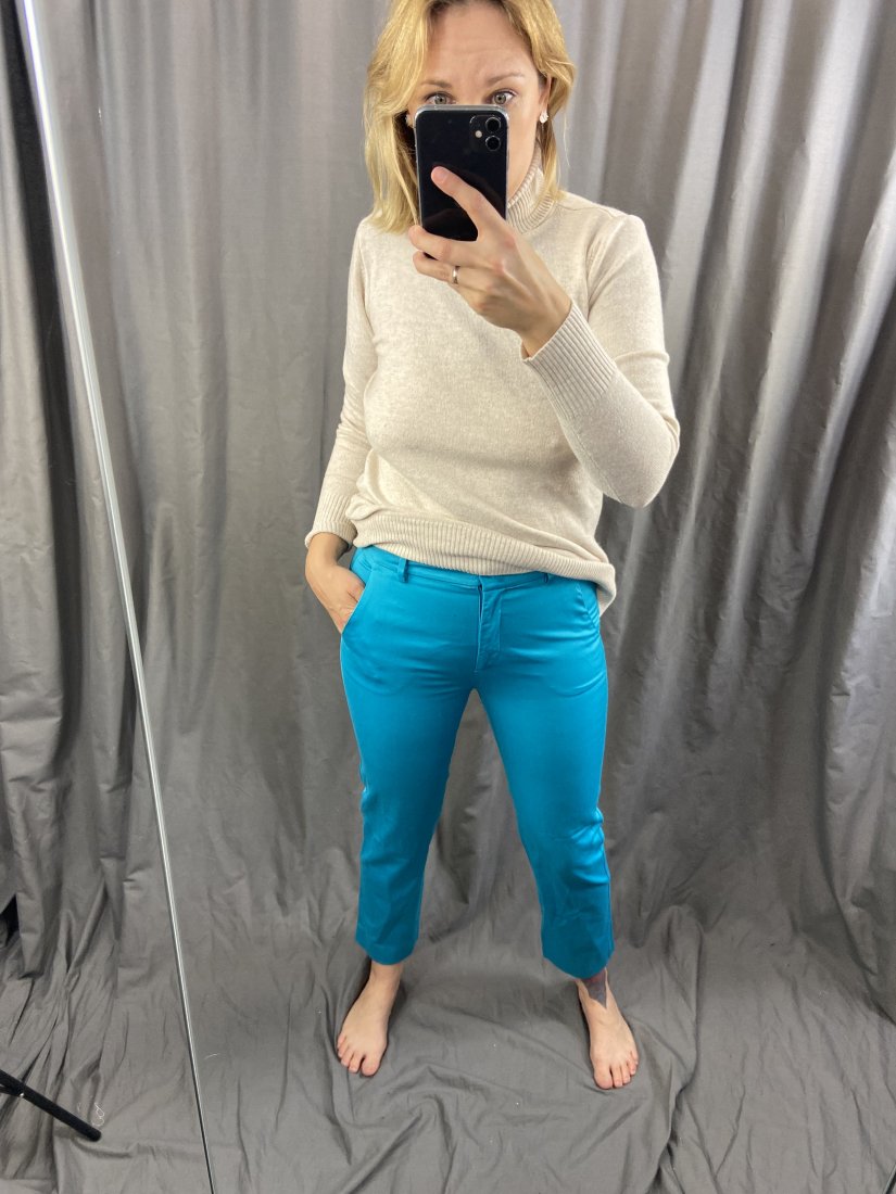 MaxMara Cropped Cigarette. Bawełniana (2% elastyny) przepiękne turkusowe spodnie luksusowej marki.