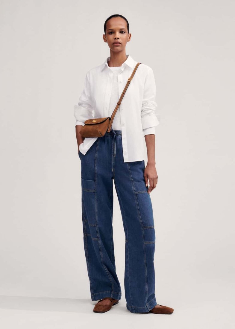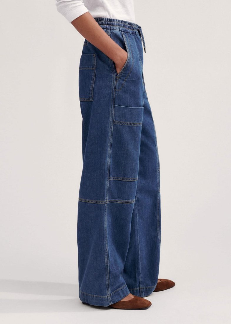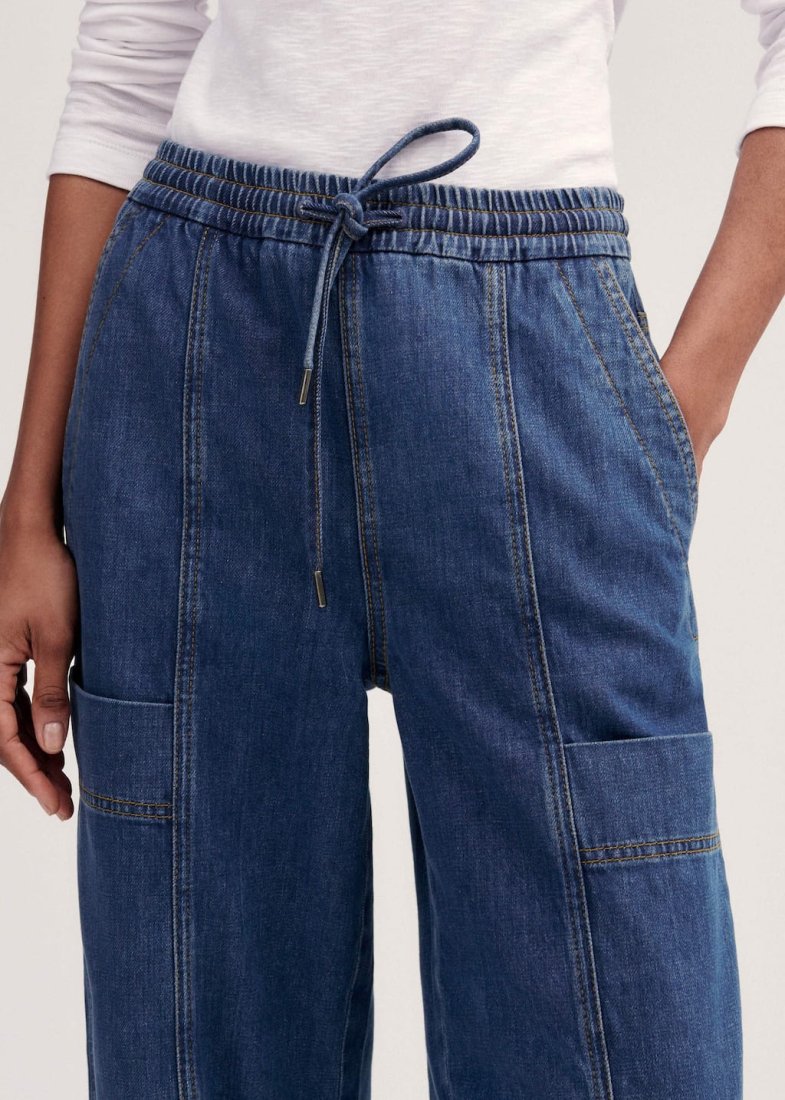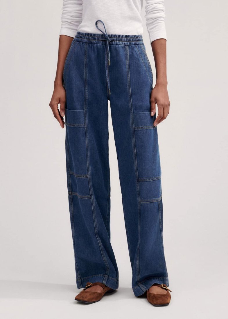 Jeansy Cargo Travel z lekkiego denimu z mieszanki bawełny, ze ściągaczem w pasie i pojemnymi kieszeniami wzdłuż nogawek. Średni stan. Prosta nogawka.