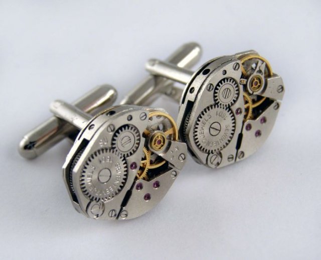 Wyjątkowe spinki do mankietów wykonane z oryginalnych mechanizmów zegarkowych i kryształków Swarovskiego w eleganckim, srebrnym wykończeniu. Idealne połączenie klasyki i industrialnej estetyki.