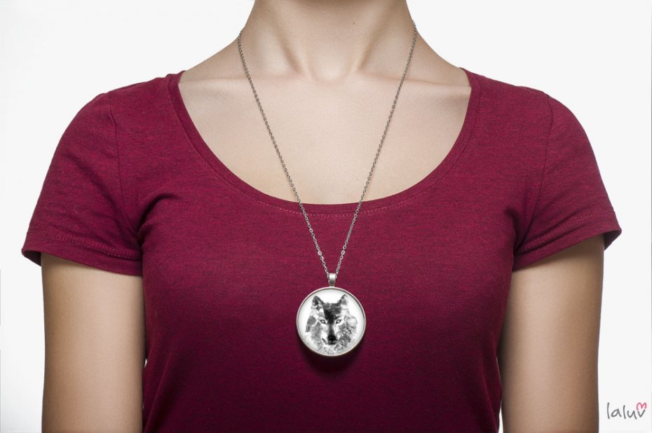 Ręcznie robiony medalion z wysokiej jakości grafiką zamkniętą pod wypukłym szkiełkiem i oprawioną w bazę w kolorze srebrnym.