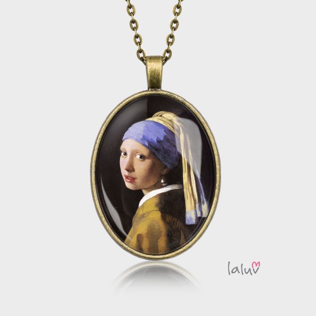 Ręcznie robiony medalion z wysokiej jakości grafiką zamkniętą pod wypukłym szkiełkiem i oprawioną w bazę w kolorze antycznego złota.