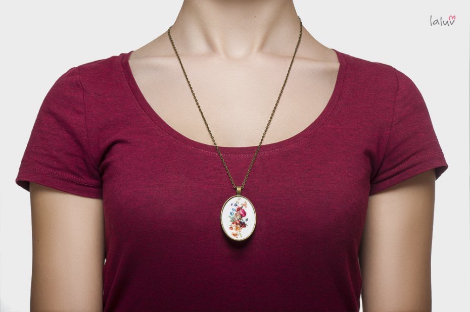 Baza medalionu zawieszona jest na łańcuszku o długości od 45cm do 85 cm.