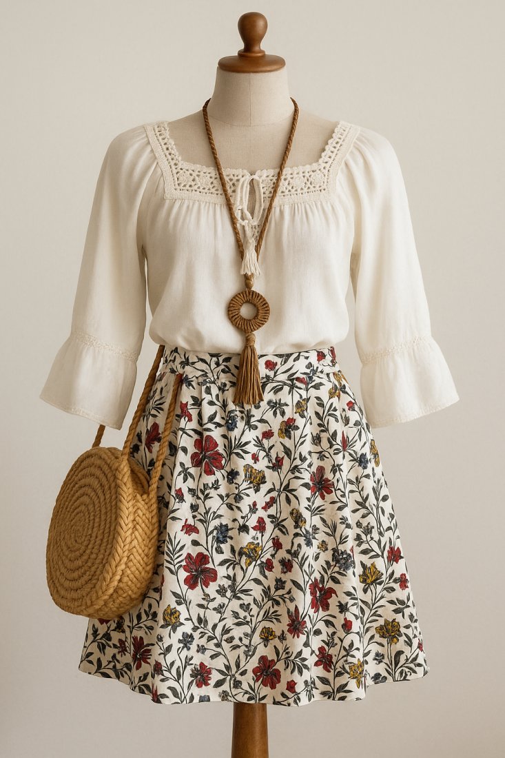 To spódniczka idealna na lato, spacery i codzienne stylizacje, ale równie dobrze sprawdzi się w zestawieniu z elegancką bluzką czy marynarką. Styl vintage, romantyczny i ponadczasowy.