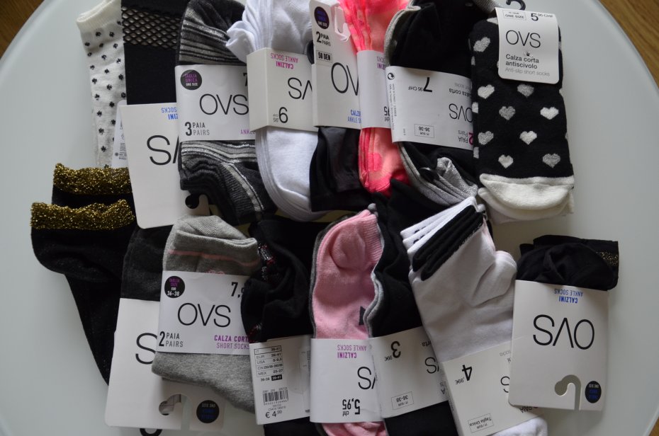 nowe skarpety - razem 33 pary, większość w rozmiarze 36-38 i uniwersalnym, kilka par to rozmiar 39-42; różne składy i długości; jedna para z ABSem, kilka par cienkich (jak rajstopy)