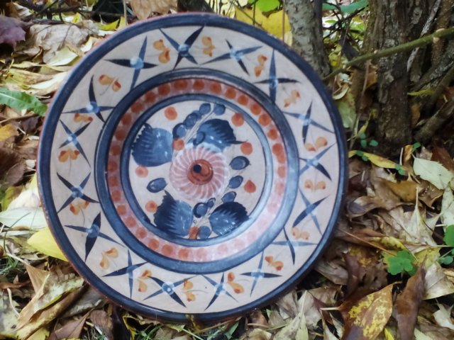 Ceramiczny talerz do powieszenia, malowany w motywy kwiatowe roślinne o stosowanych barwach. Rękodzieło vintage z lat 80 - tych pochodzące z Meksyku - polecam !