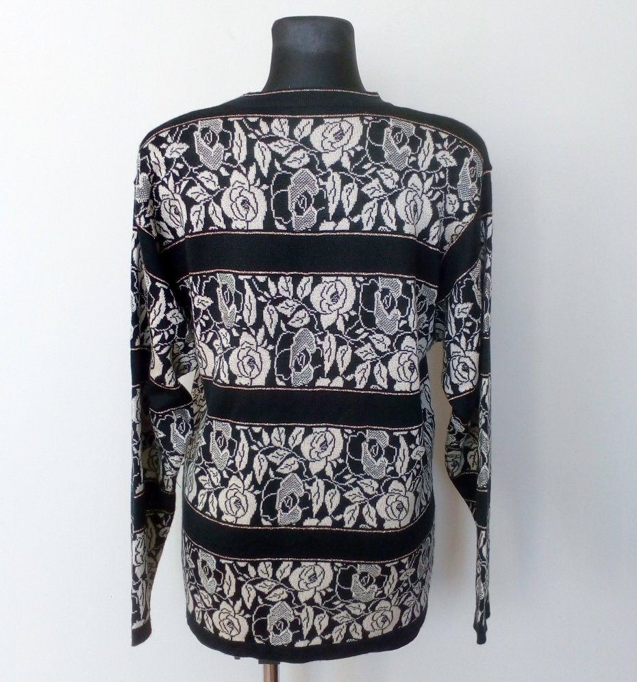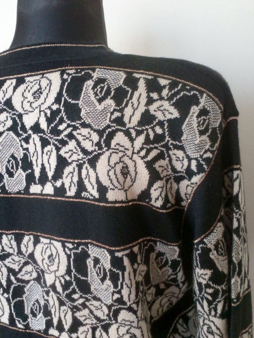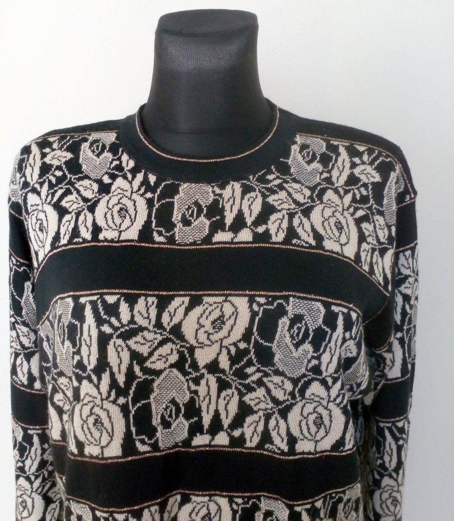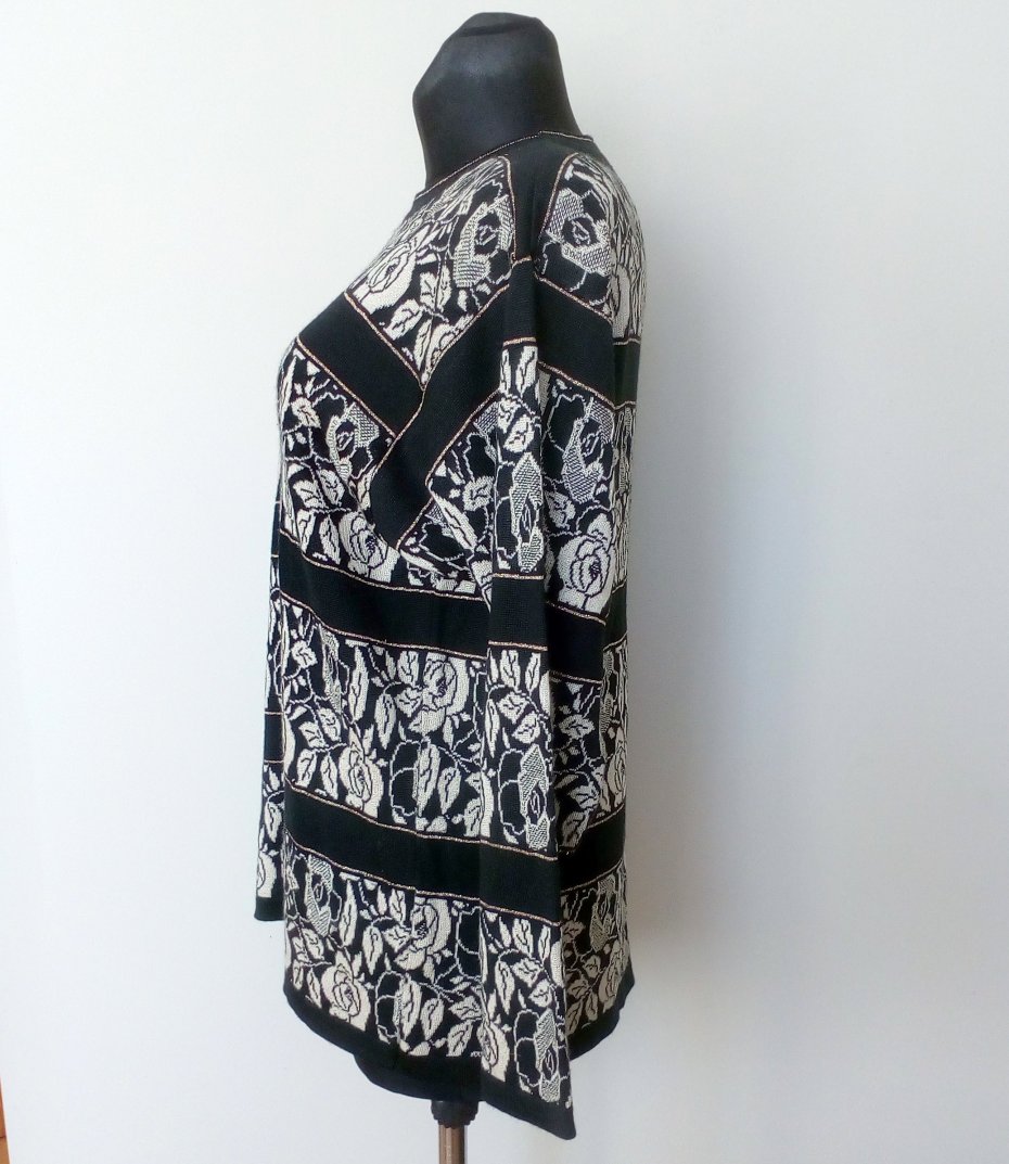 Elegancki sweter w kolorze czarnym i beżowym, z dodatkiem złotej nitki