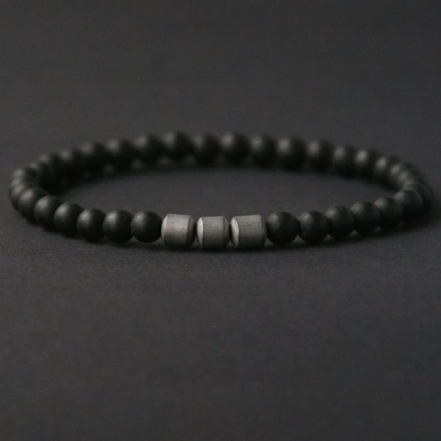 MĘSKA BRANSOLETKA : BLACK LAVA & SILVER HEMATITE