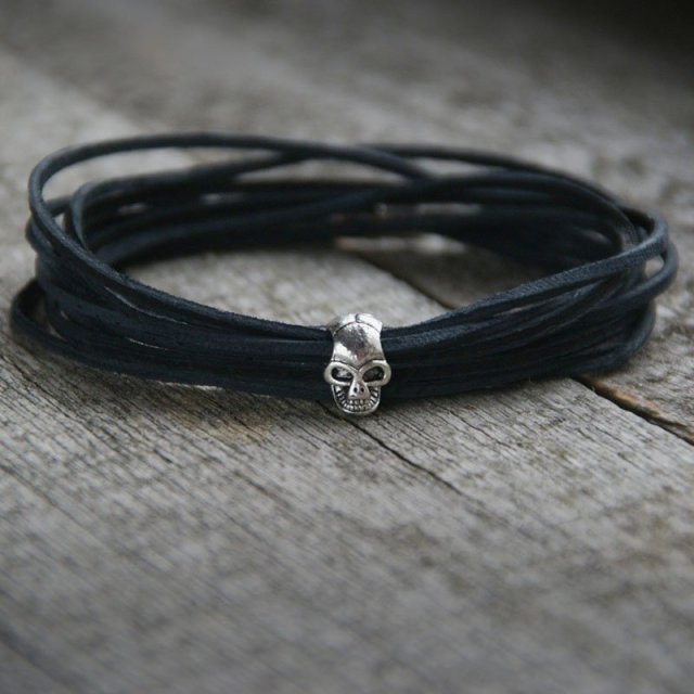 ... NOWA, męska kolekcja!!! TUTAJ: prosta, lecz ciekawa bransoletka wykonana z rzemienia zamszowego ze SKÓRY NATURALNEJ (3 rzemienie 2mm) z antyalergiczną czaszeczką - do 3-krotnego owinięcia wokół nadgarstka. WYGODNE, BEZPIECZNE ZAPIĘCIE - zapięcie magnetyczne z dodatkowym zabezpieczeniem (antyalergiczne). .. OBW. WEWNĘTRZNY : 18,7cm (polecam na standardowy nadgarstek 18,5cm) - ten model powinien być przylegający do nadgarstka.... bransoletka będzie wyglądać dobrze zarówno solo jak i w komplecie (osobiście polecam z bransoletkami z hematytem = efekt rockowy ;-) .... bransoletka stanowić będzie idealny prezent na Dzień Chłopca/ na Gwiazdkę / Walentynki itp. BIŻUTERIA ZAWSZE PODRÓŻUJE W OZDOBNYM OPAKOWANIU :-)