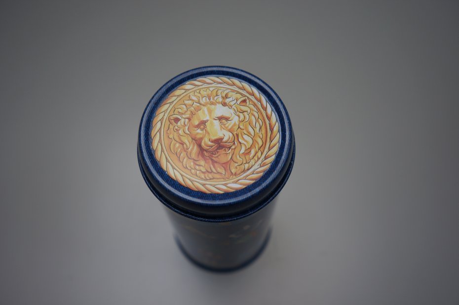 Metalowa puszka z wieczkiem. Ozdobiona motywami Dzikiego Zachodu. Ładna, żywa kolorystyka. Może posłużyć do przechowywania kredek, długopisów. Stan bardzo dobry.