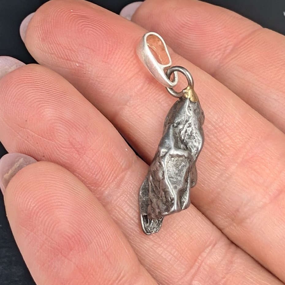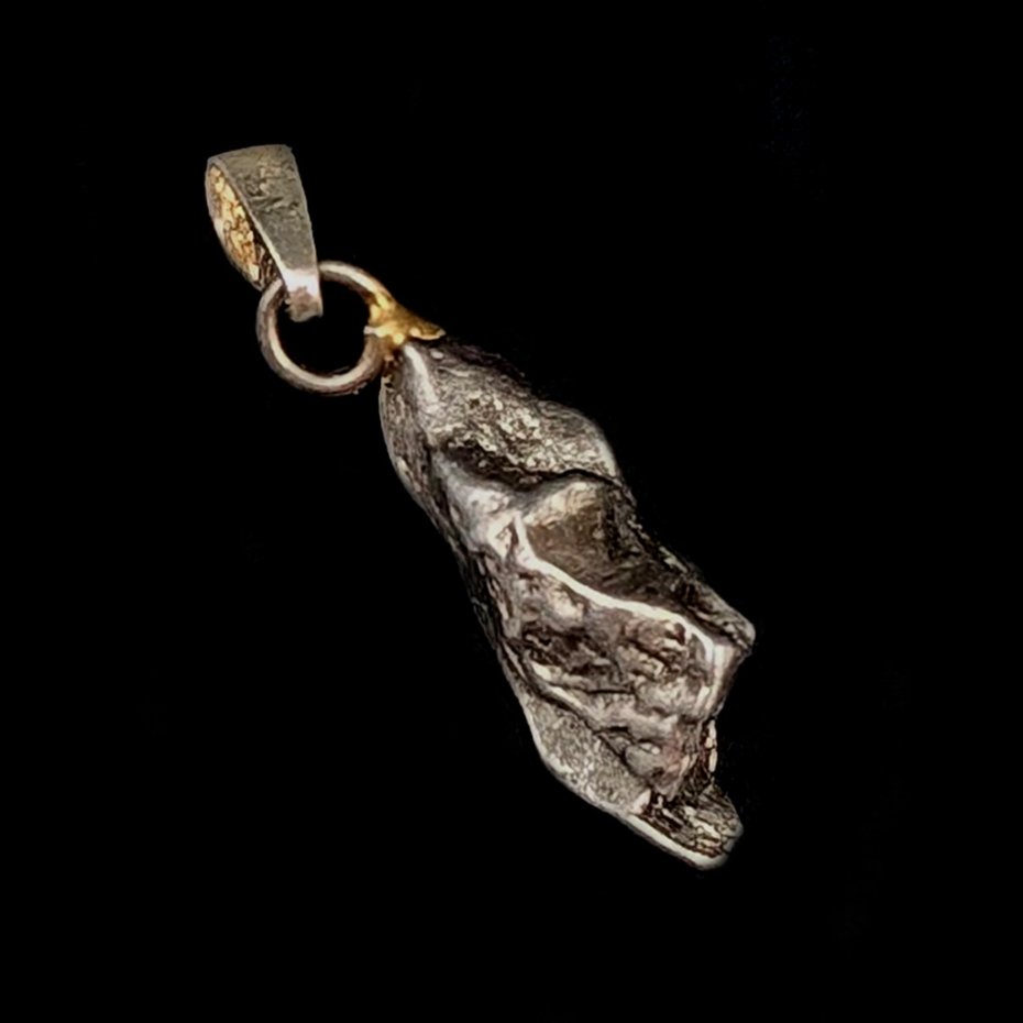 Wisiorek z meteorytem żelaznym Campo del Cielo, który znaleziono w 1576 roku w Argentynie. Krawatka srebro 925, oksydowane. Uniwersalny, dla niego lub dla niej. Wymiary 21 x 7 mm. Długość max 30 mm. Waga wisiora 4,4 g. Do meteorytu dołączona zostanie metryka z datą, miejscem spadku i wagą. Wisiorek zostanie zapakowany w ozdobne pudełeczko.