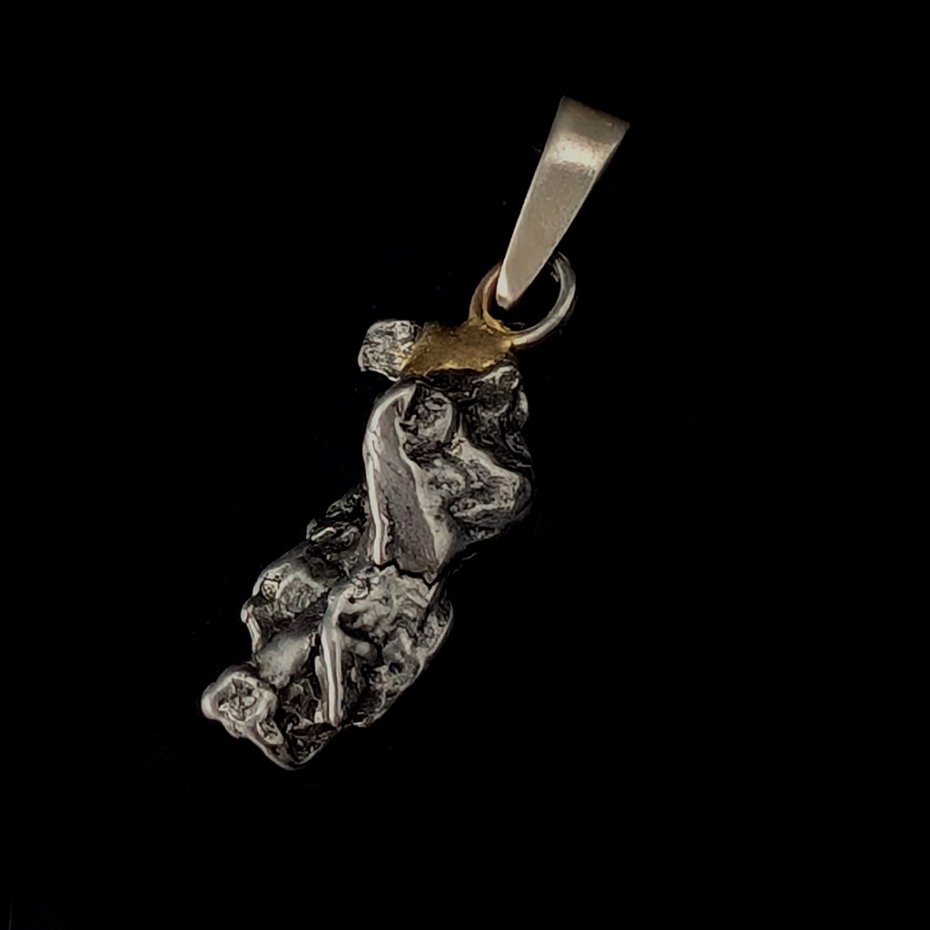Wisiorek z meteorytem żelaznym Campo del Cielo, który znaleziono w 1576 roku w Argentynie. Krawatka srebro 925. Uniwersalny, dla niego lub dla niej. Wymiary 22 x 8 mm. Długość max 20 mm. Waga wisiora 3,5 g. Do meteorytu dołączona zostanie metryka z datą, miejscem spadku i wagą. Wisiorek zostanie zapakowany w ozdobne pudełeczko.