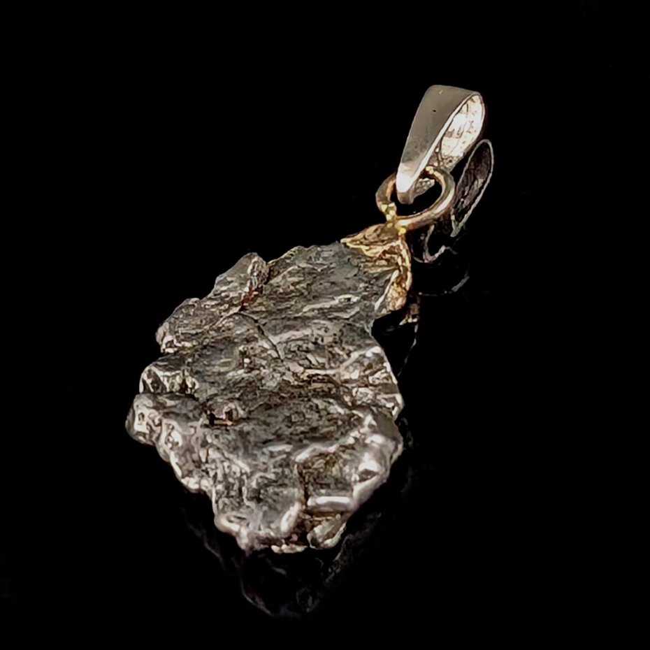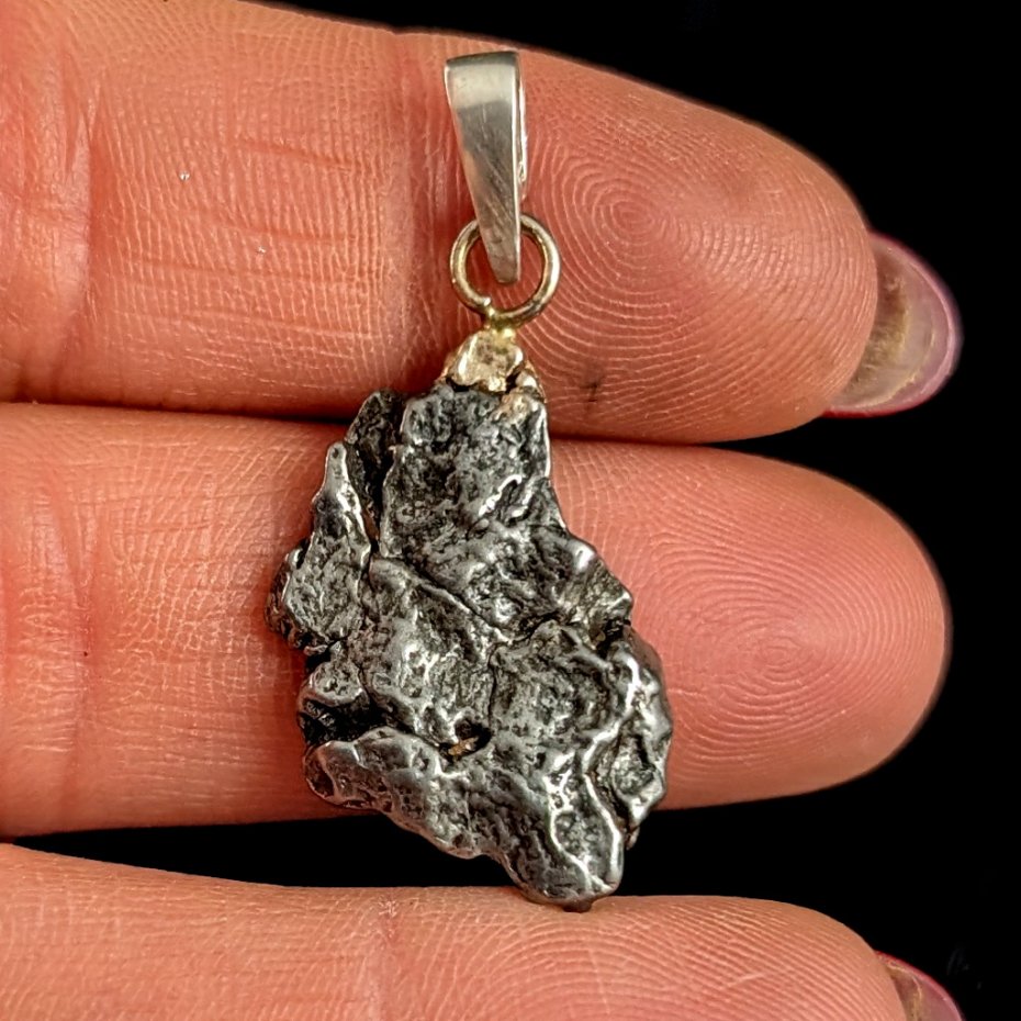 Wisiorek z meteorytem żelaznym Campo del Cielo, który znaleziono w 1576 roku w Argentynie. Krawatka srebro 925 Uniwersalny, dla niego lub dla niej. Wymiary 22 x 16 mm. Długość max 32 mm. Waga wisiora 7 g. Do meteorytu dołączona zostanie metryka z datą, miejscem spadku i wagą. Wisiorek zostanie zapakowany w ozdobne pudełeczko.