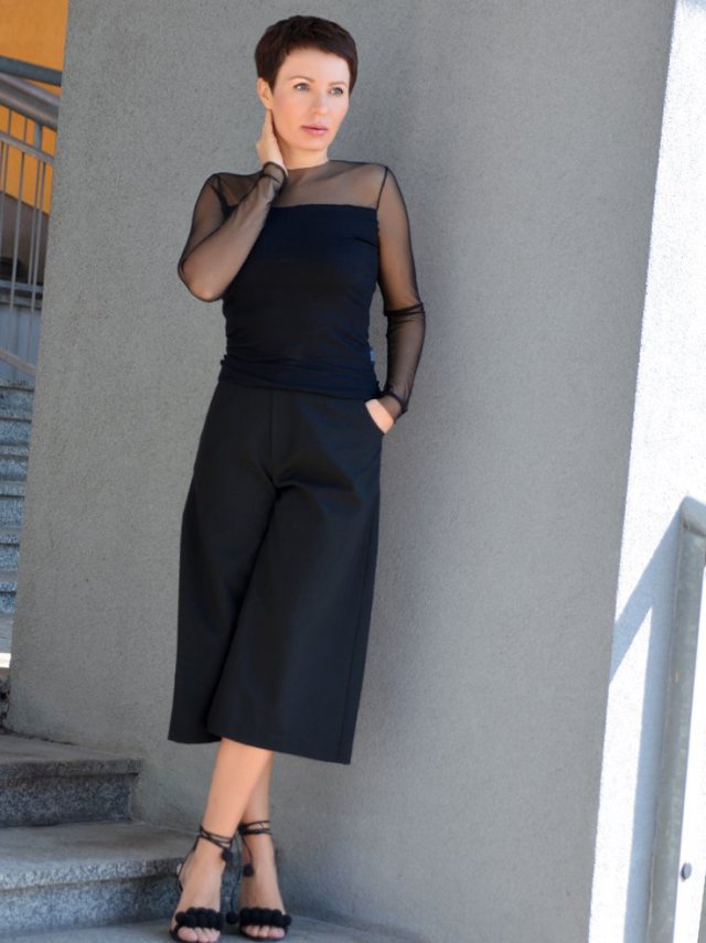 Czarna mgiełka delikatna bluzka z długim rękawem wykonana z wysokogatunkowej wiskozy oraz miękkiego tiulu cięta na surowo