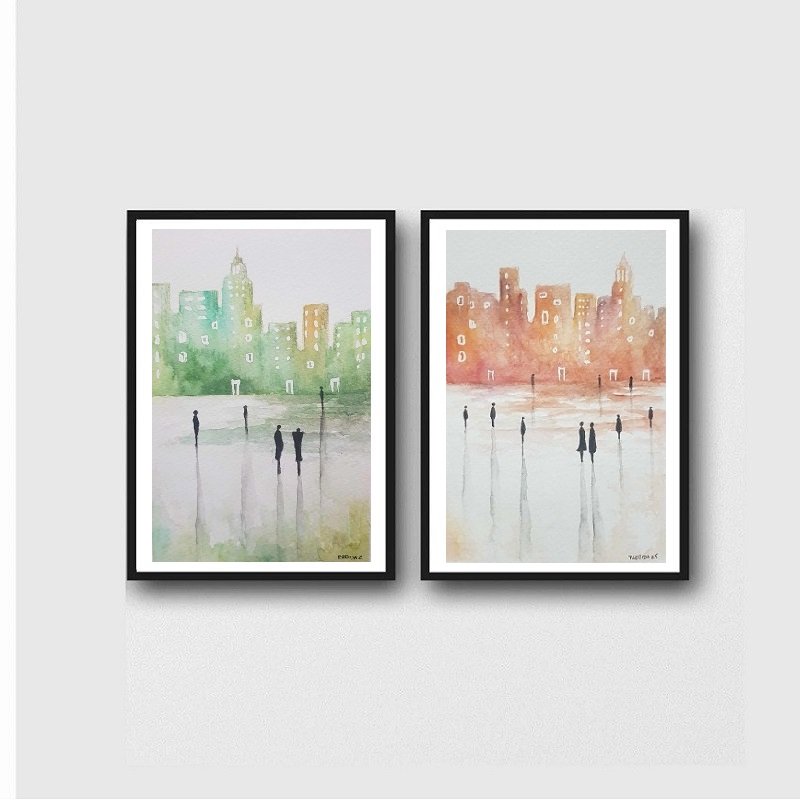 Dwie prace wykonane farbą akwarelową na papierze akwarelowym 300g/m2, format każdej 18/12,5 cm . Przedstawione są w przykładowych ramach. Zapraszam :)