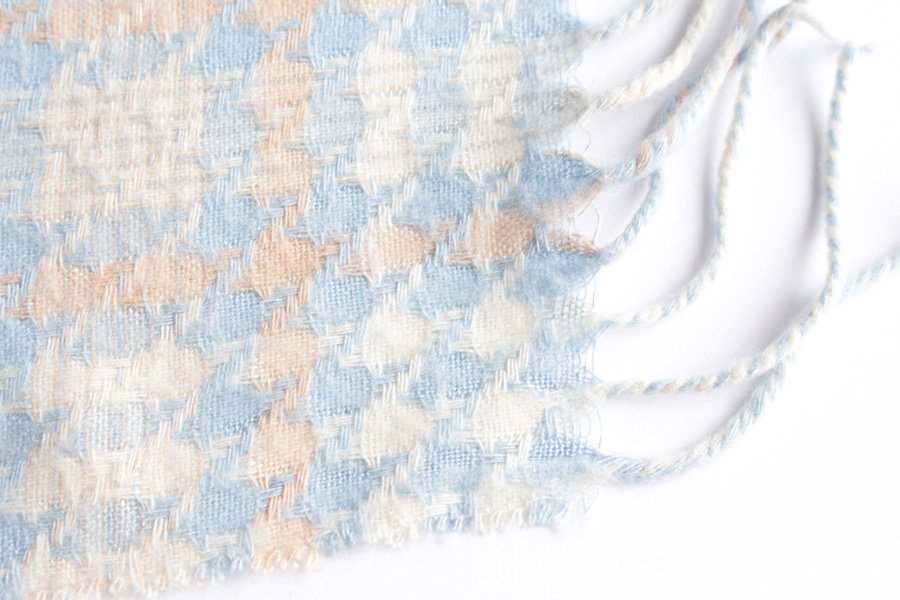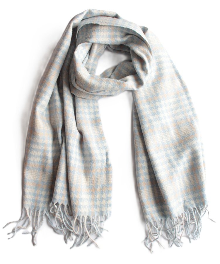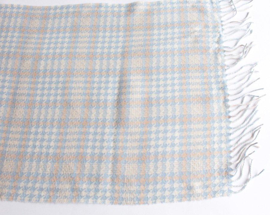 Duży, niezwykle miękki w dotyku szal w pastelową pepitkę. Tkanina w dotyku przypomina flanelę.