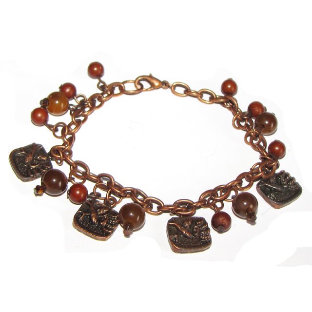 Bransoletka wykonana z miedzi, kulek agatu oraz akrylowych kuleczek
