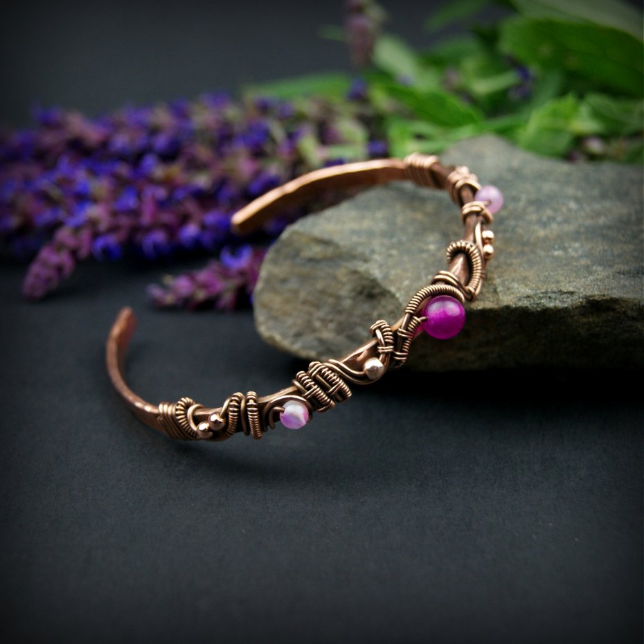 Tagi: #biżuteria artystyczna, #bransoleta mankietowa, #bransoleta miedziana, #wire wrapping