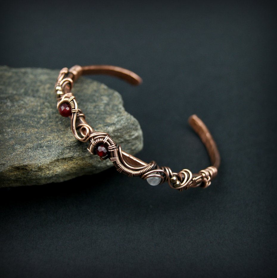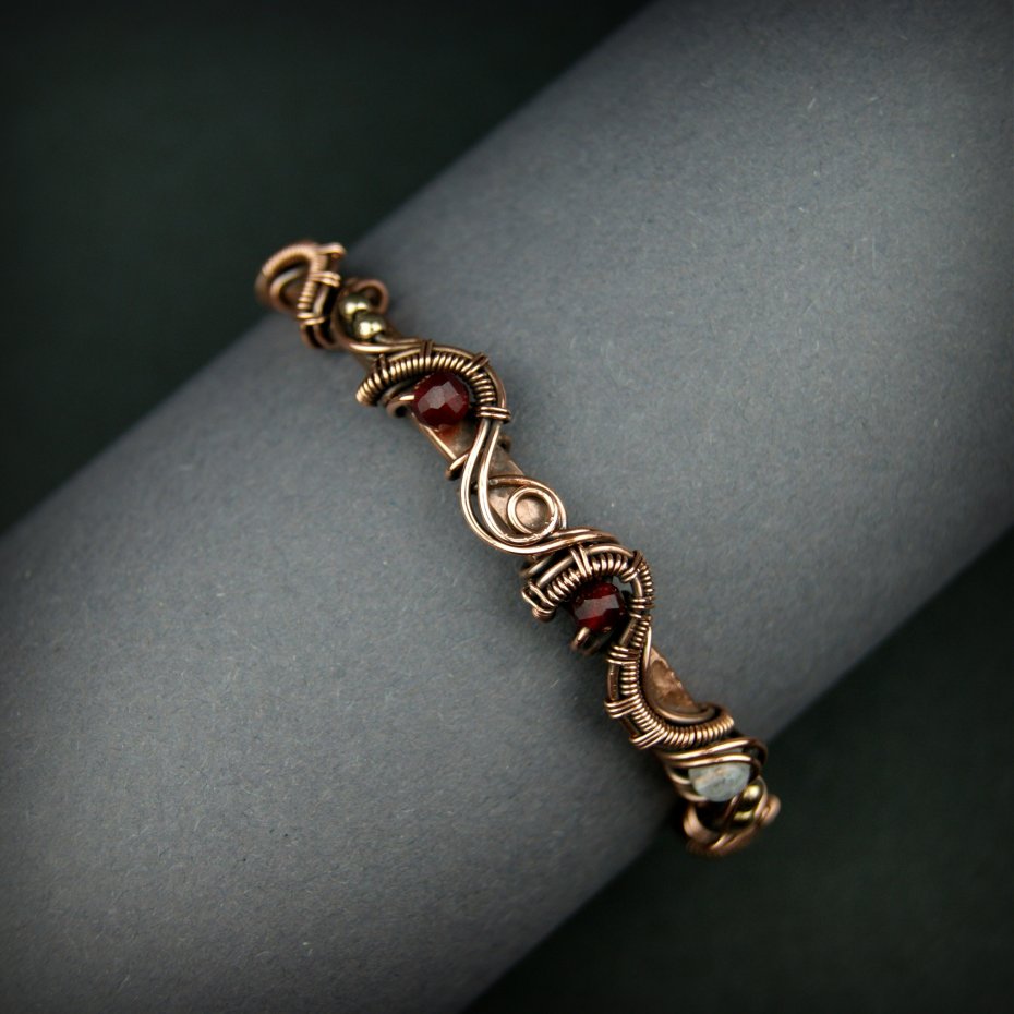 Tagi: #biżuteria artystyczna, #bransoleta mankietowa, #bransoleta miedziana, #wire wrapping