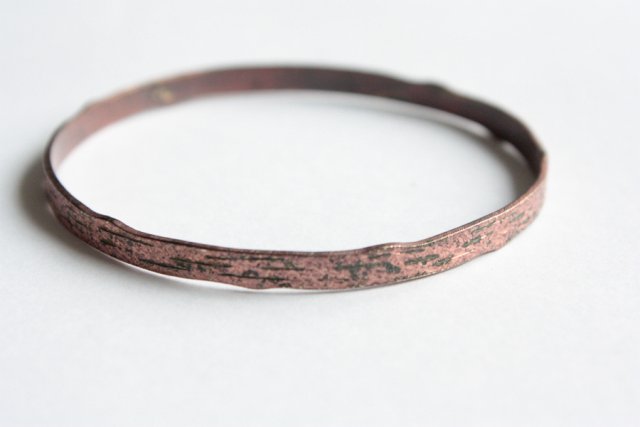 Wyjątkowa bransoletka o nineregularnym kształcie. Wykonana prawdopodobnie z miedzi.