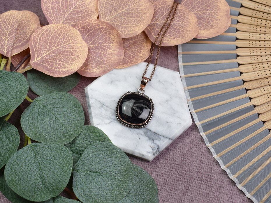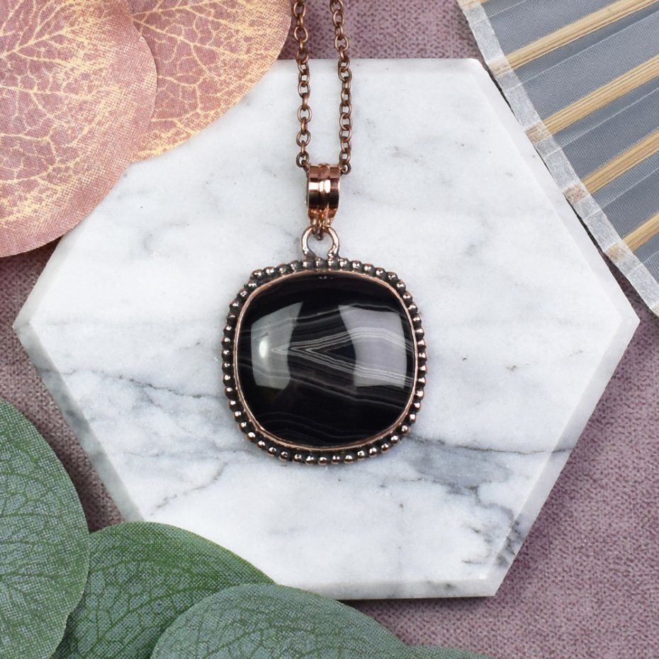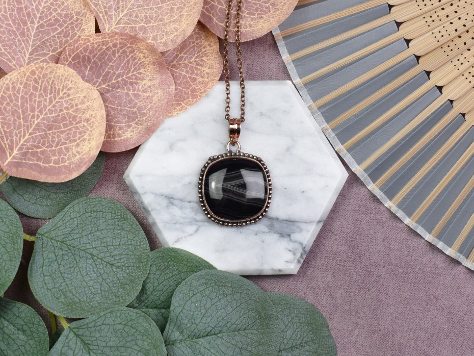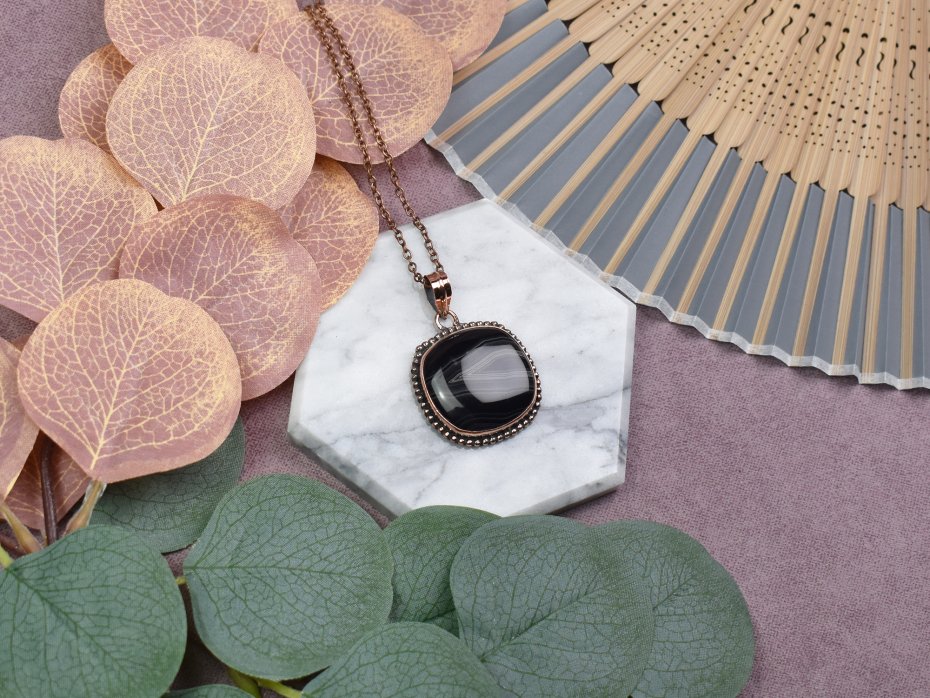 Elegancki wisiorek z miedzią i agatem z Botswany to wyjątkowy dodatek do Twojej biżuterii. Kamień ten, o subtelnym odcieniu i pięknym wzorze, jest kojarzony z harmonią i równowagą. Jego właściwości sprzyjają wzmocnieniu wewnętrznego spokoju oraz pobudzeniu kreatywności, stanowiąc nie tylko ozdobę, lecz także talizman pozytywnej energii.