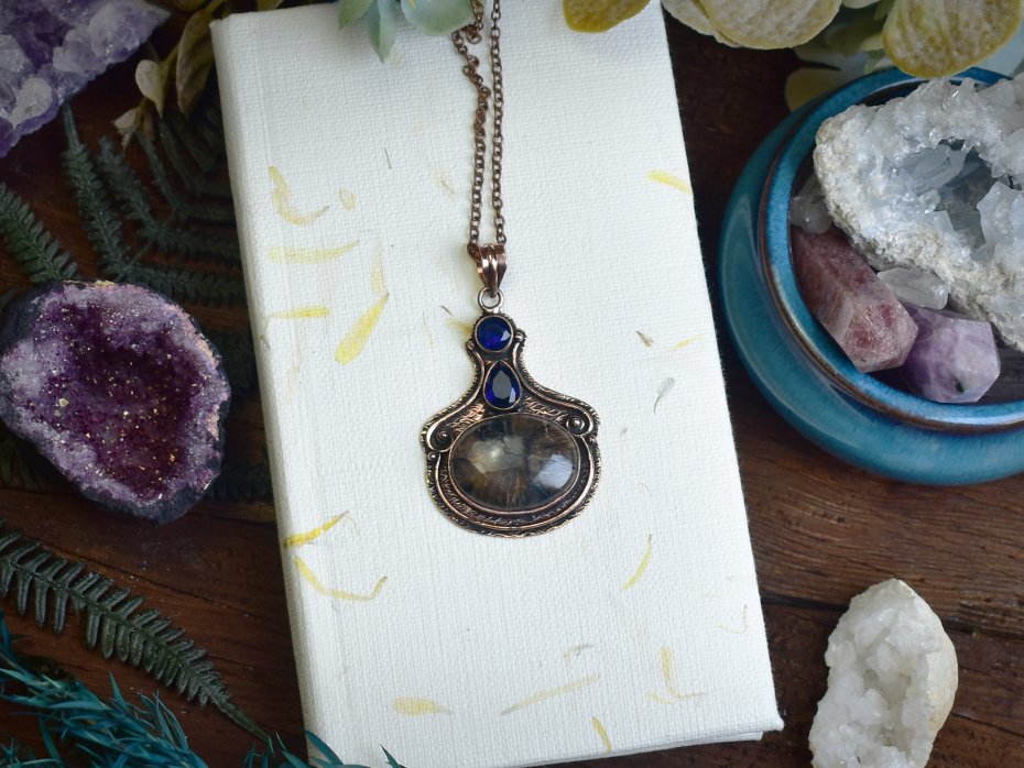 Poza tym zajmuję się oprawą kamieni. Używam kamieni naturalnych, kocham labradoryty, ametysty i kwarce. Do oprawy używam miedzi i cyny w technice tiffany oraz miedzi do elektroformowania. Inspiruję się naturą chcąc stworzyć wisiorki i amulety wyglądające jak z gier fantasy :)