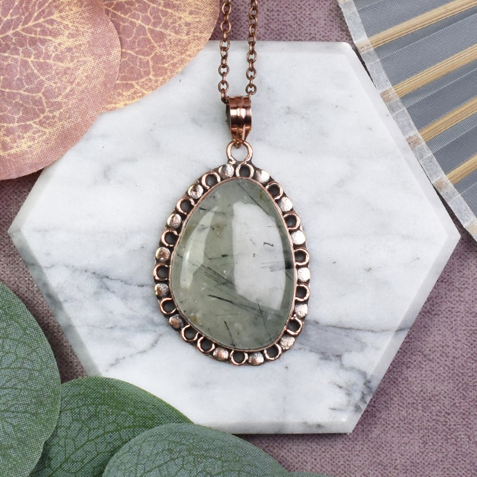 Piękny wisiorek z miedzi z prehnitem to nie tylko wyjątkowy dodatek, ale także nosiciel pozytywnej energii. Kamień prehnit jest znany ze swojej zdolności do harmonizowania ciała i umysłu, przynosząc równowagę emocjonalną. Jego delikatne, zielone odcienie dodają uroku wisiorkowi, tworząc subtelny, naturalny akcent. To nie tylko biżuteria, to również amulet, który podkreśla piękno natury i pozytywną moc kamieni szlachetnych.