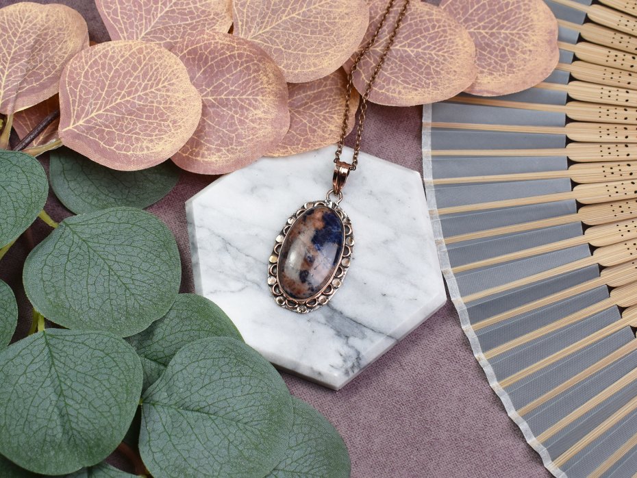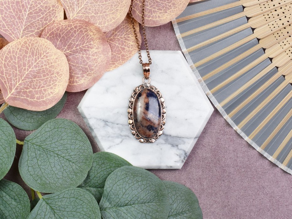 Elegancki wisiorek z miedzią i sodalitem to nie tylko piękny dodatek, ale także talizman korzystny dla ciała i umysłu. Sodalit, o intensywnym niebieskim kolorze, przypisuje się zdolność wspierania spokoju i klarowności myśli. Dodając temu wyjątkowemu wisiorkowi, emanującemu prostotą i stylem, możesz cieszyć się nie tylko estetycznym urokiem, ale także korzystnym wpływem kamienia na Twoje samopoczucie.