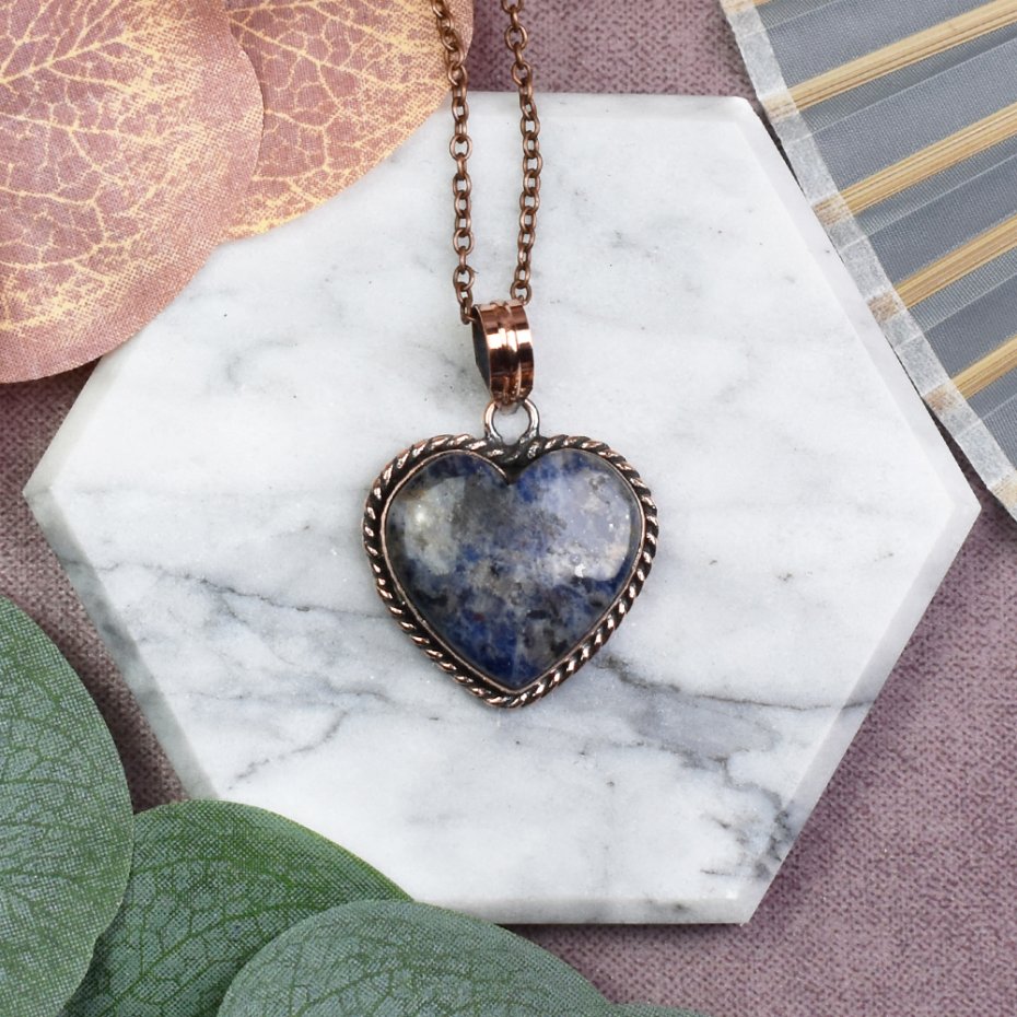 Elegancki wisiorek z miedzią i sodalitem to nie tylko piękny dodatek, ale także talizman korzystny dla ciała i umysłu. Sodalit, o intensywnym niebieskim kolorze, przypisuje się zdolność wspierania spokoju i klarowności myśli. Dodając temu wyjątkowemu wisiorkowi, emanującemu prostotą i stylem, możesz cieszyć się nie tylko estetycznym urokiem, ale także korzystnym wpływem kamienia na Twoje samopoczucie.
