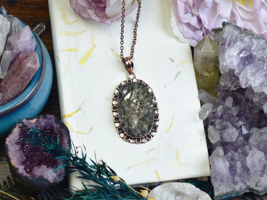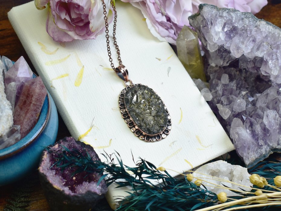 Poza tym zajmuję się oprawą kamieni. Używam kamieni naturalnych, kocham labradoryty, ametysty i kwarce. Do oprawy używam miedzi i cyny w technice tiffany oraz miedzi do elektroformowania. Inspiruję się naturą chcąc stworzyć wisiorki i amulety wyglądające jak z gier fantasy :)