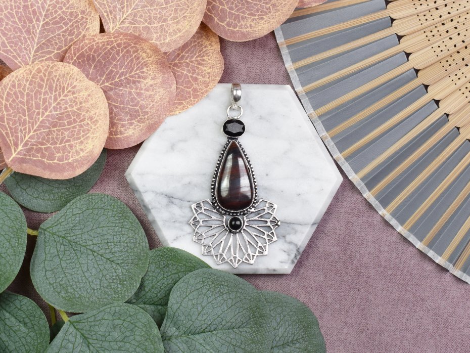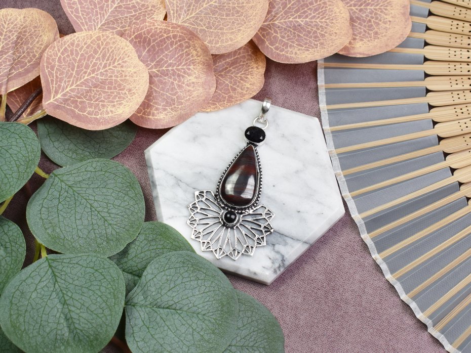 Ten wisiorek łączy w sobie elegancję srebra i unikalne właściwości kamieni, tworząc piękny i symboliczny dodatek na każdą okazję.