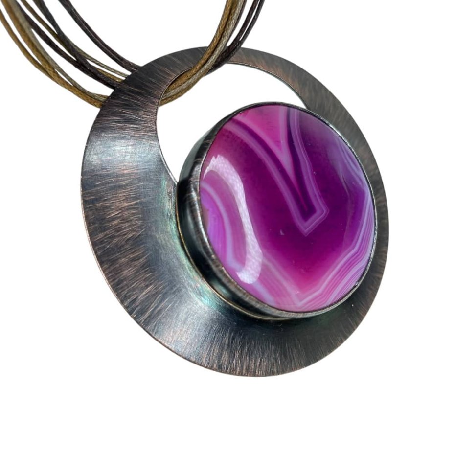 “Agatowe krajobrazy" to kolekcja naszyjników z niepowtarzalnymi agatami osadzonymi w miedzi.