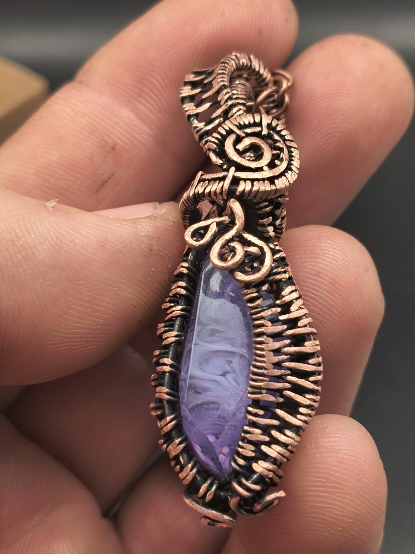 Tagi: #miedź, #wire wrapping, #wisior, #żywica epoksydowa