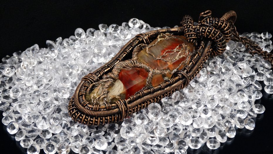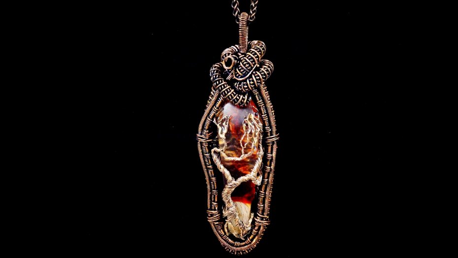 Tagi: #miedziany wisior, #unikatowa biżuteria, #wire wrapping, #żywica epoksydowa