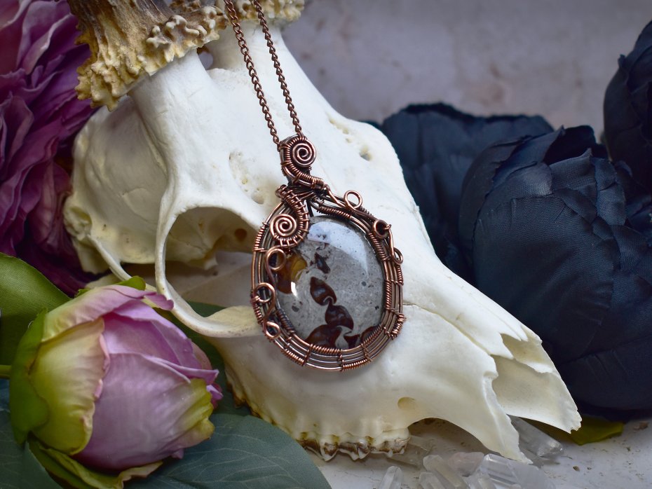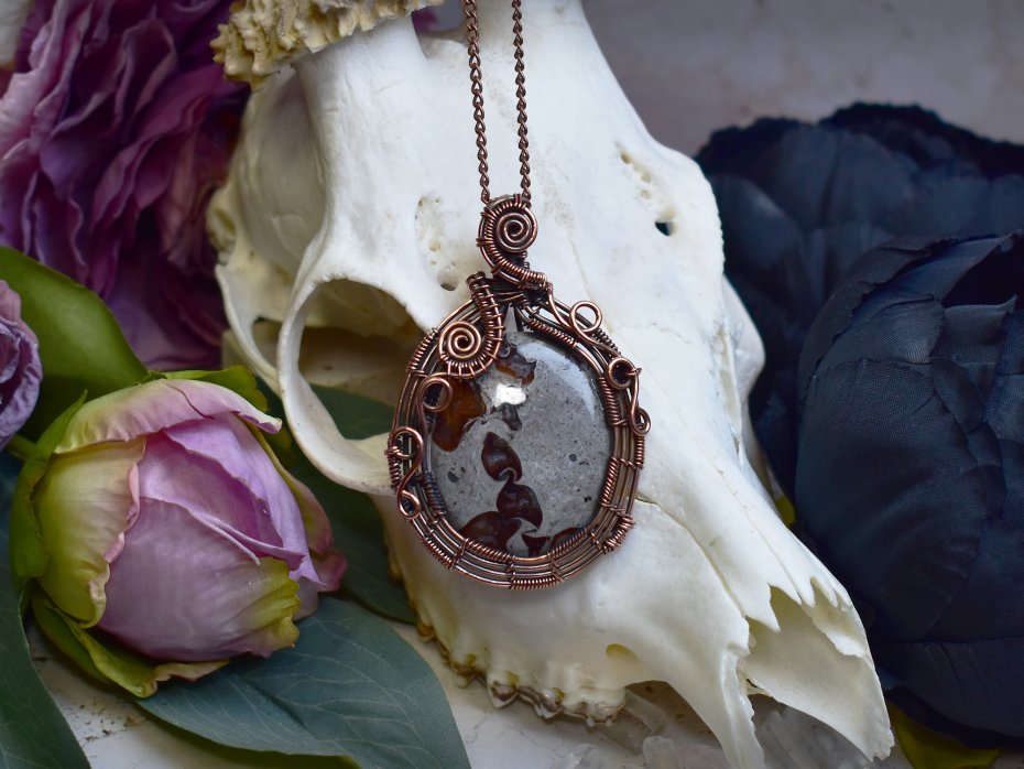 Poza tym zajmuję się oprawą kamieni. Używam kamieni naturalnych, kocham labradoryty, ametysty i kwarce. Do oprawy używam miedzi i cyny w technice tiffany oraz miedzi do elektroformowania. Inspiruję się naturą chcąc stworzyć wisiorki i amulety wyglądające jak z gier fantasy :)